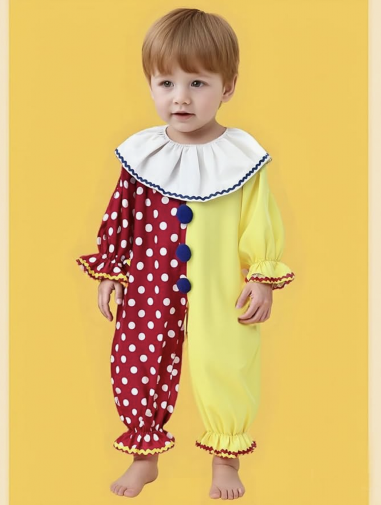 Long Sleeve Contrast Color Ruffle Layered Jumpsuit Romper with Hat that will bring smiles to boys and girls.