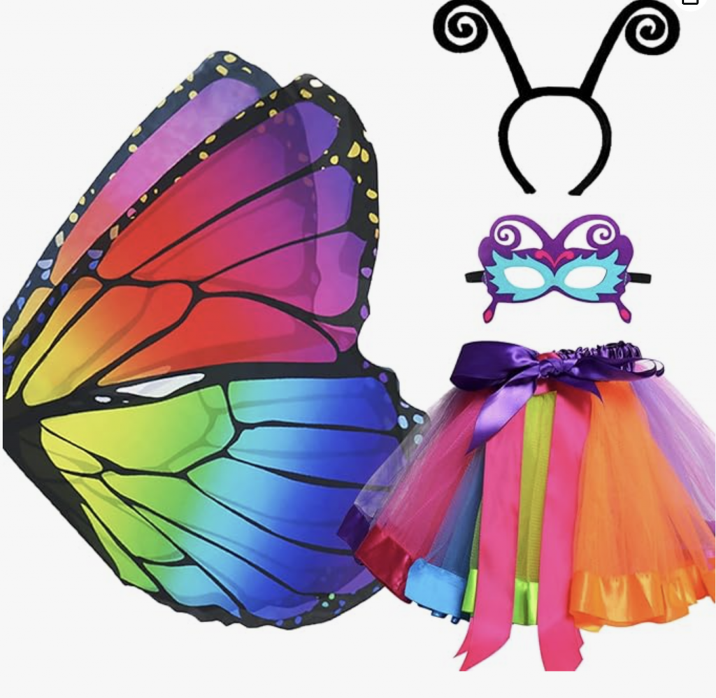 This colorful costume for girls will lend imagination wings to all who wear it.