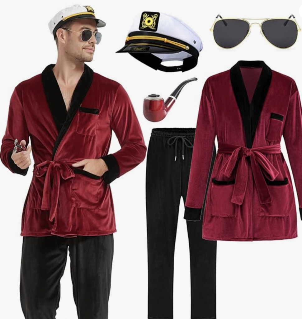 You’ll look like the Heff himself in this fun, but luxurious costume!