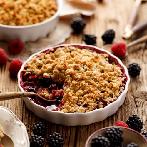 • Bake for 35–40 minutes or until topping is golden and berries are bubbling.
